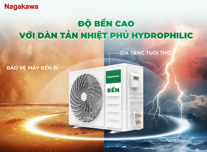 Lớp phủ hydrophilic còn cho phép nước ngưng tụ chảy nhanh hơn, ngăn ngừa hiện tượng nước đọng trên bề mặt. Điều này không chỉ duy trì hiệu suất vận hành tối ưu cho dàn nóng mà còn giảm thiểu nguy cơ hình thành nấm mốc và vi khuẩn, bảo vệ sức khỏe và cải thiện chất lượng không khí trong không gian sống. Đây là giải pháp lý tưởng để đảm bảo hiệu suất hoạt động ổn định và độ bền cao, đặc biệt phù hợp với điều kiện khí hậu nóng ẩm tại Việt Nam.